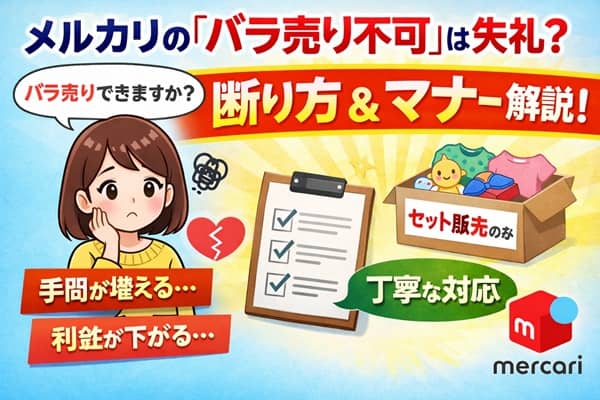 「バラ売り不可」とは、セット商品やまとめ売り商品を分けて販売しないという出品者の意思表示。メルカリの規約違反ではなく、完全に出品者の裁量で決められます。