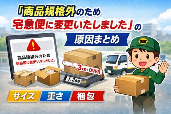 「商品規格外のため宅急便に変更いたしました」と表示される理由はシンプルで、選択した発送方法の規定(サイズ・重さ・形状)に合っていないと判断されたためです。