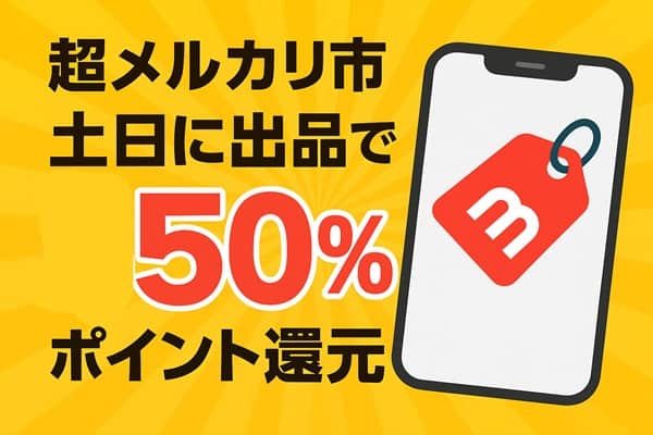 土日に出品することで、販売手数料の50%をポイント還元してもらえます。実質 販売手数料が半額になります。